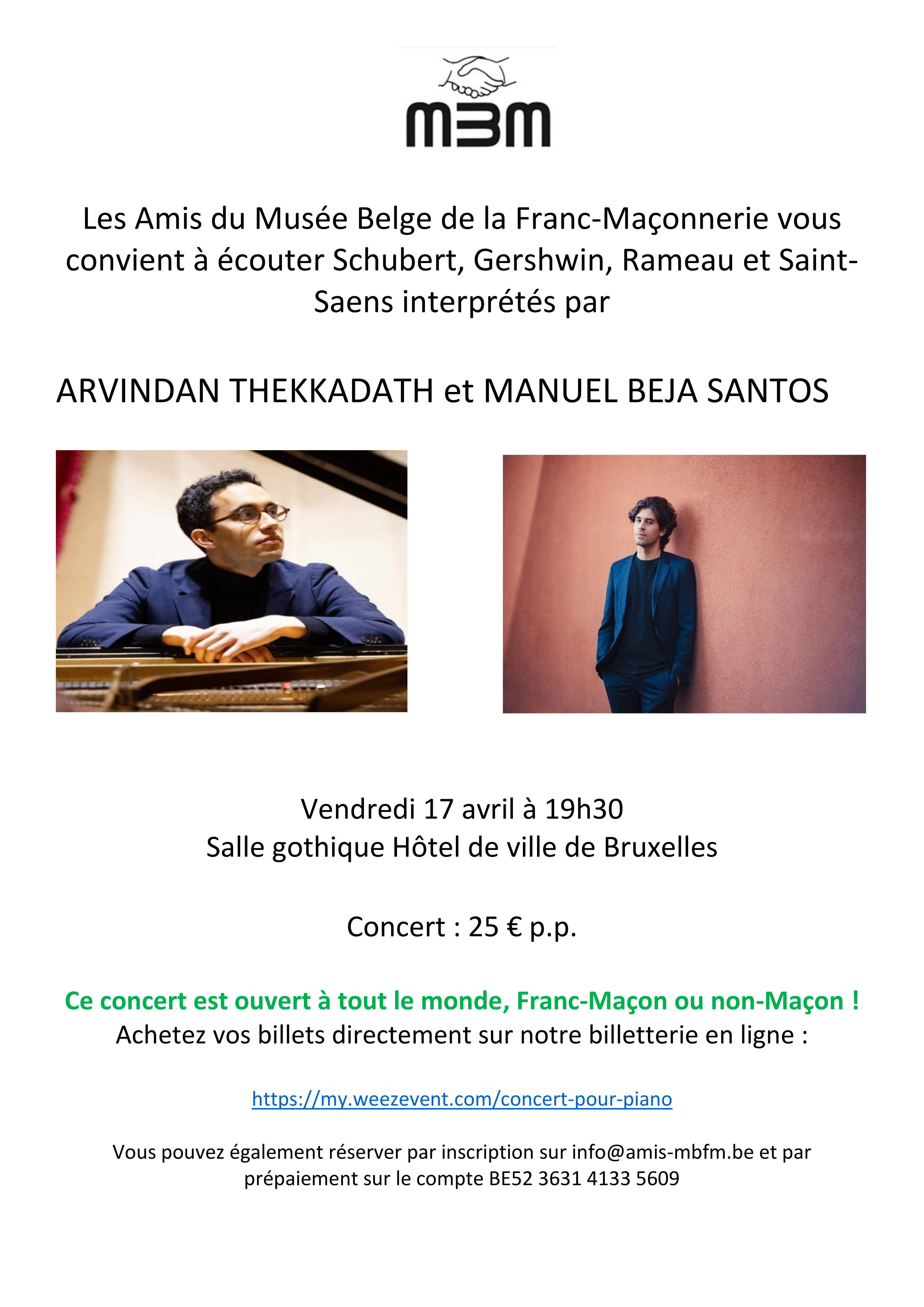 Concert organisé en faveur du Musée Belge de la Franc-maçonnerie le 17 avril - salle gothique de l'hôtel de ville de Bruxelles
